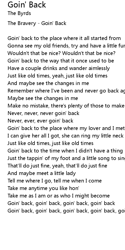 Goin' back, goin' back, goin' back, goin' back |