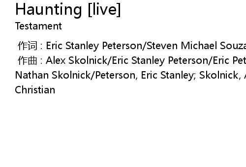 | [00:00.000] | 作曲 : Alex Skolnick/Eric Stanley Peterson/Eric Peterson/Alexander Nathan Skolnick/Peterson, Eric Stanley; Skolnick, Alexander Nathan/Greg Christian |