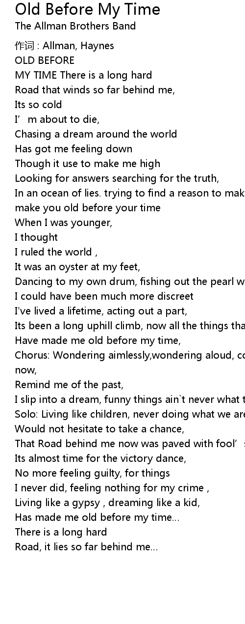 | 歌曲 | Old Before My Time |
