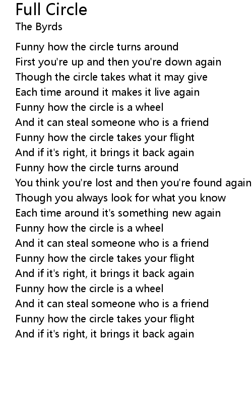 Funny how the circle takes your flight |