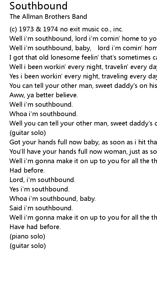 | Well i'm southbound, baby, lord i'm comin' home to you. | |