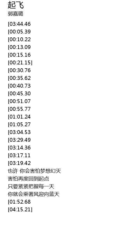 | [04:09.27][03:29.49][03:09.28][01:16.17] | wo jue ding ben xiang qian zhan chi gao fei |