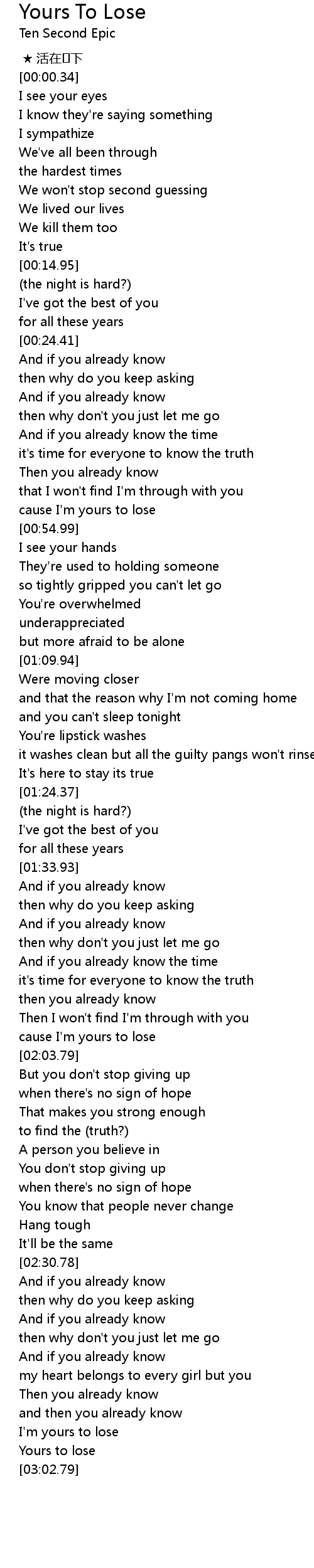 | [02:59.58] | Yours to lose |
