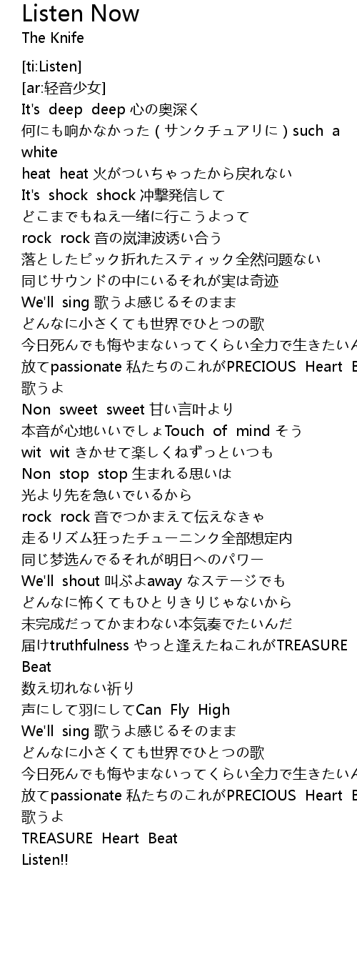 | [02:12.219] | 届けtruthfulness やっと逢えたねこれがTREASURE Heart Beat |