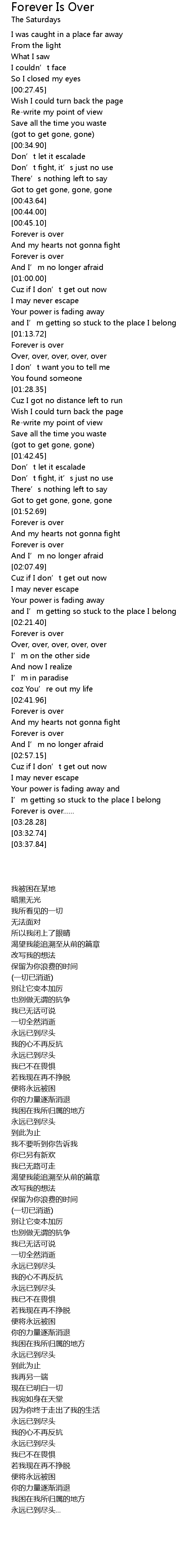 | [02:00.15] | Forever is over |