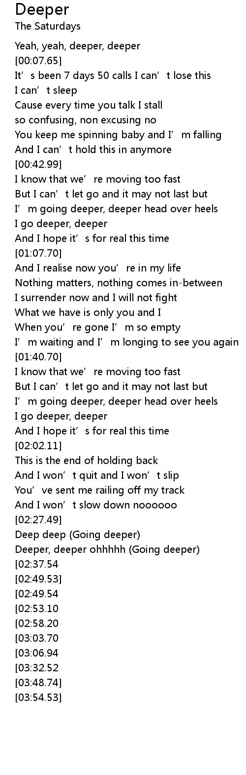 | [02:43.48][02:37.54] | Deeper, deeper |