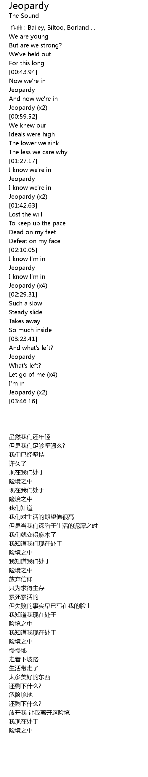 | [03:43.08] | 险境之中 |