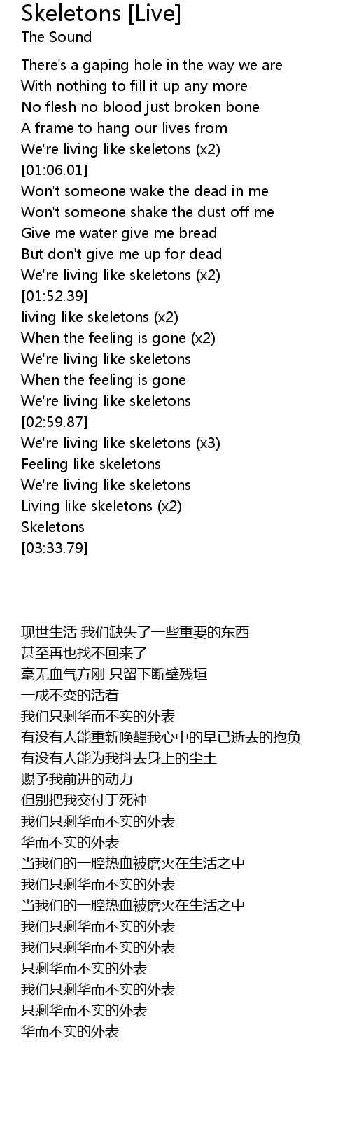 We're living like skeletons (x3) |