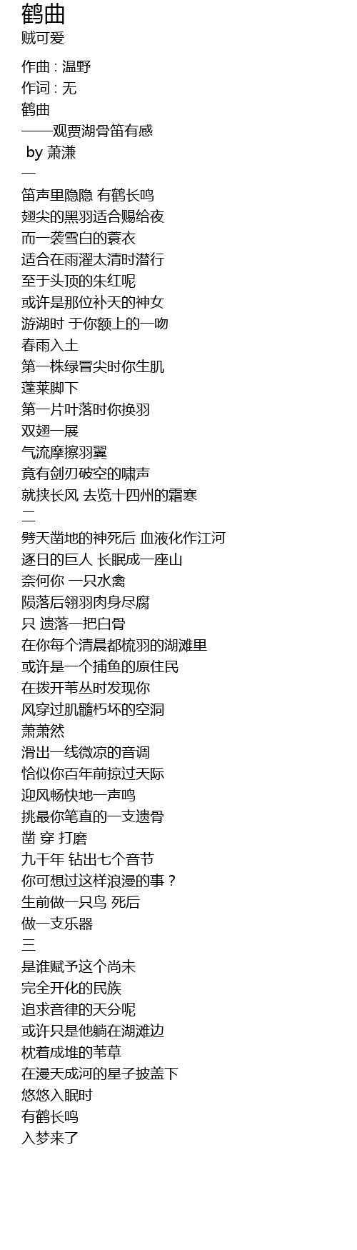 | 笛声里隐隐 有鹤长鸣 | |