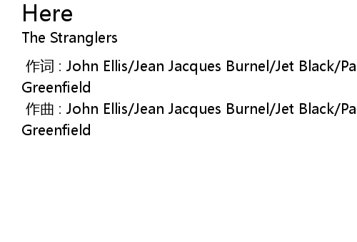 | [00:00.000] | 作词 : John Ellis/Jean Jacques Burnel/Jet Black/Paul Roberts/David Greenfield |