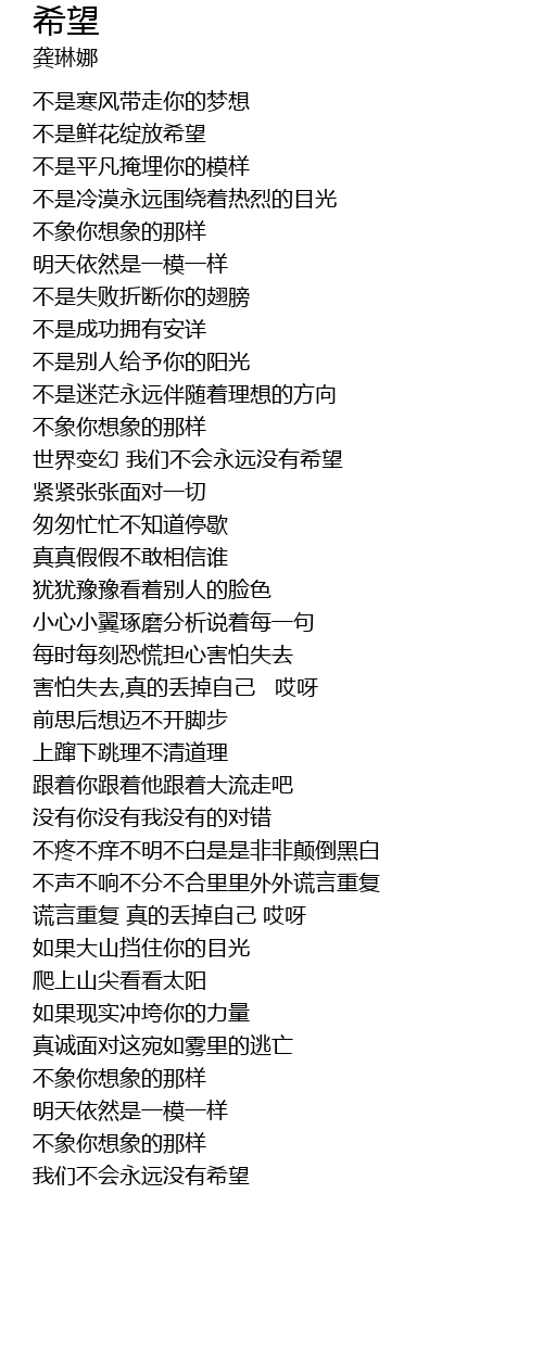 希望 歌词