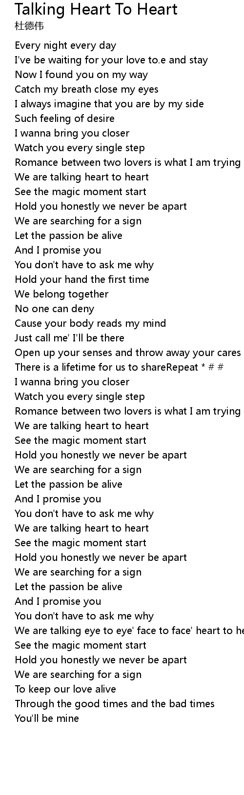 We are talking heart to heart |