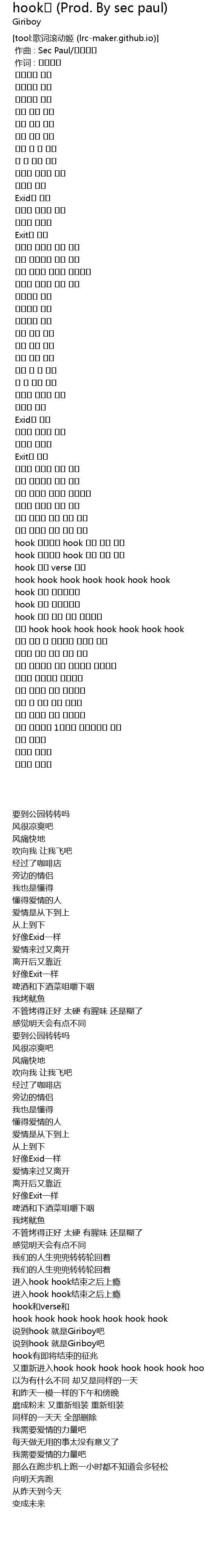 | [02:32.907] | 说到hook 就是Giriboy吧 |