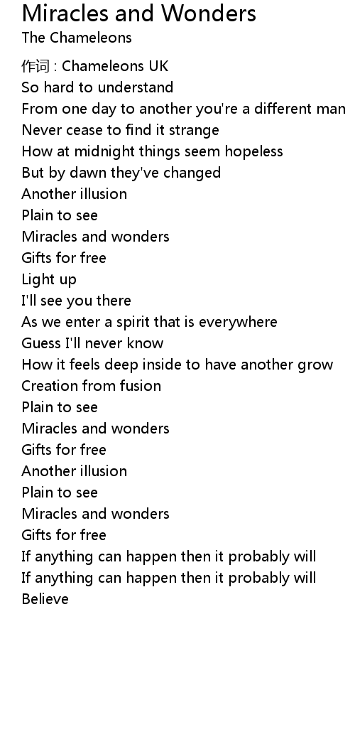 | 歌曲 | Miracles and Wonders |