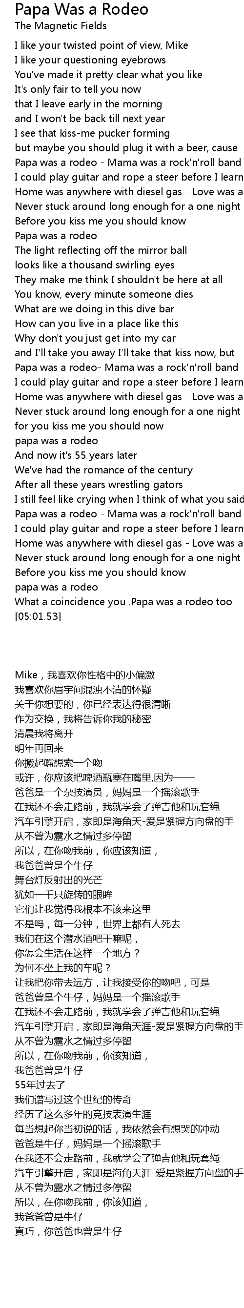 Papa was a rodeo- Mama was a rock'n'roll band |
