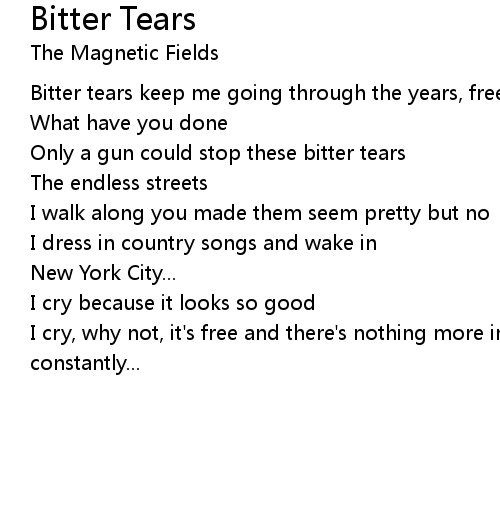 | Bitter tears keep me going through the years, freely flowing | |
