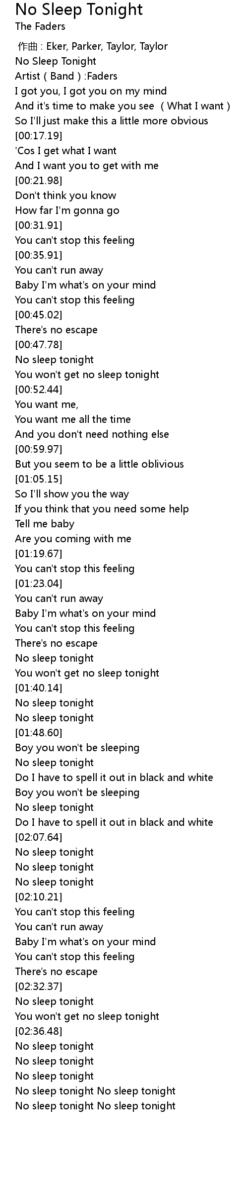 | [02:44.77] | No sleep tonight No sleep tonight |
