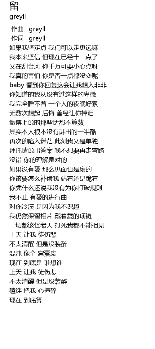 | [00:01.000] | 作词 : greyll |