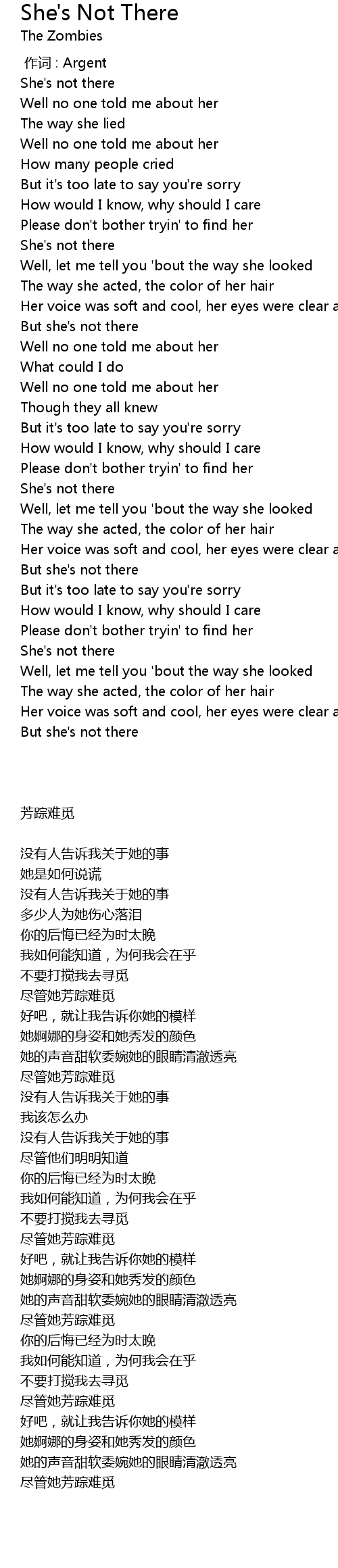 | 歌曲 | She's Not There |