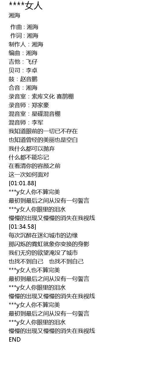 | [01:19.04] | ***y女人你眼里的泪水 |