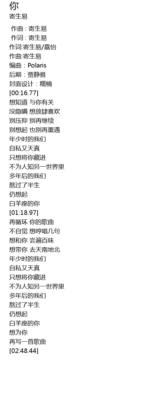 | [00:02.91] | 作词:寄生易/嘉怡 |