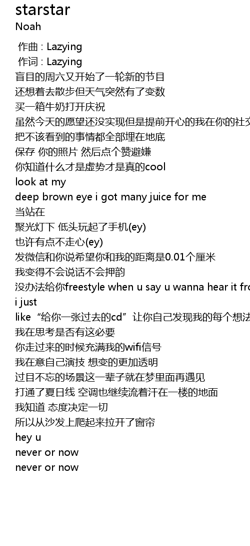 | [00:01.000] | 作词 : Lazying |