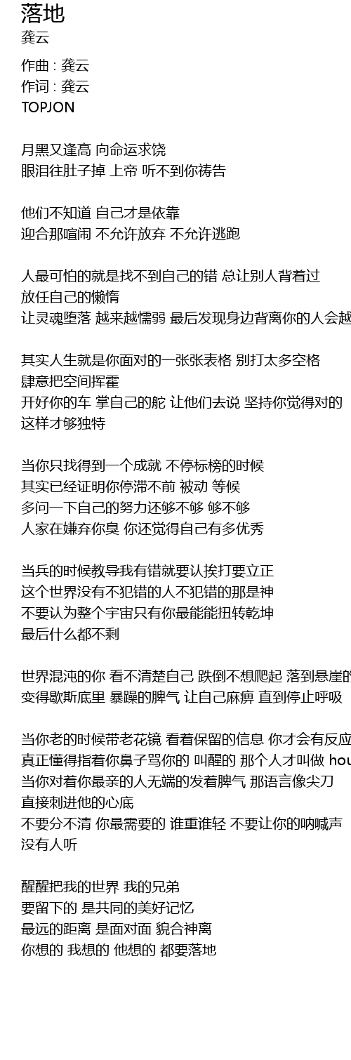| 世界混沌的你 看不清楚自己 跌倒不想爬起 落到悬崖的底 | |