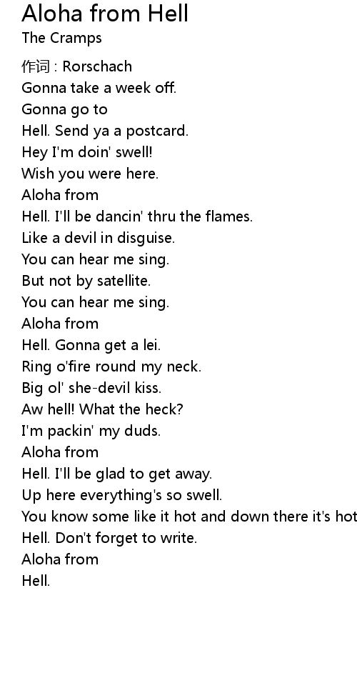 | 歌曲 | Aloha from Hell |