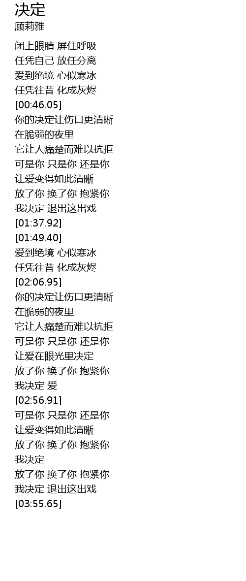 | [00:47.99] | 你的决定让伤口更清晰 |