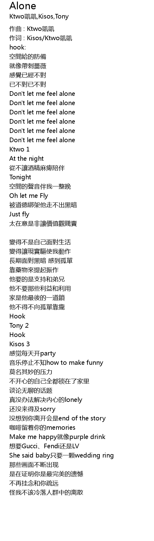 | 作词 : Kisos/Ktwo凱凱 | |