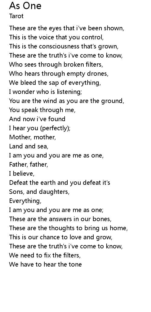 | I am you and you are me as one, | |
