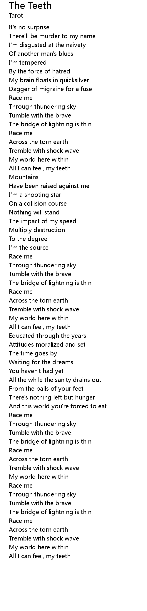 | All I can feel, my teeth |