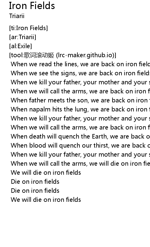 | [02:47.000] | Die on iron fields |
