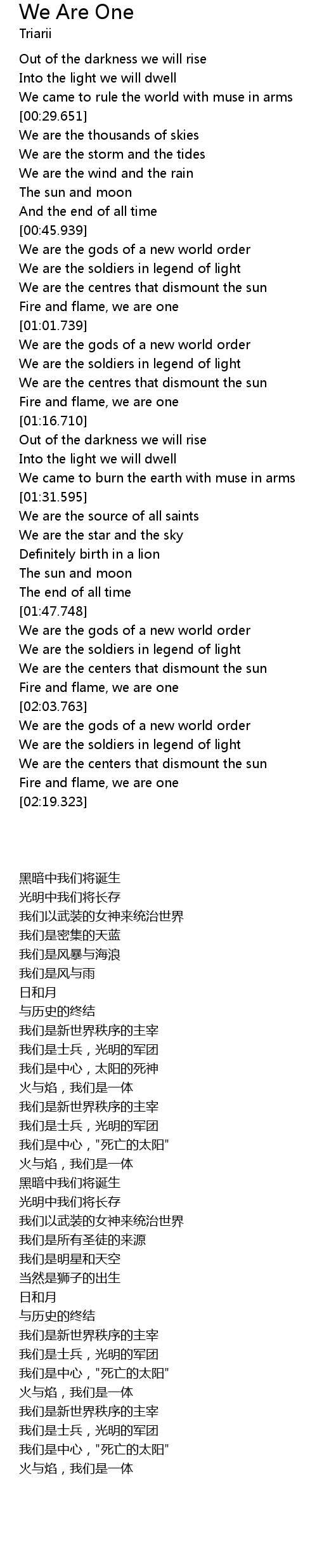 Fire and flame, we are one |