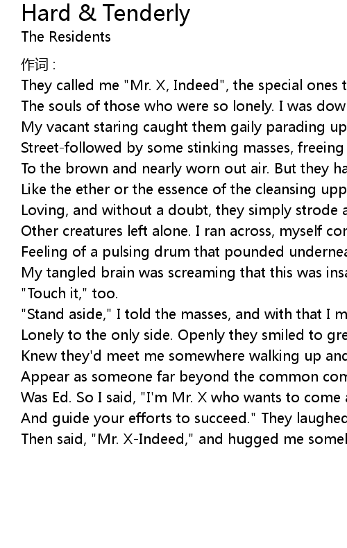 | They called me "Mr. X, Indeed", the special ones that saw so deep inside | |