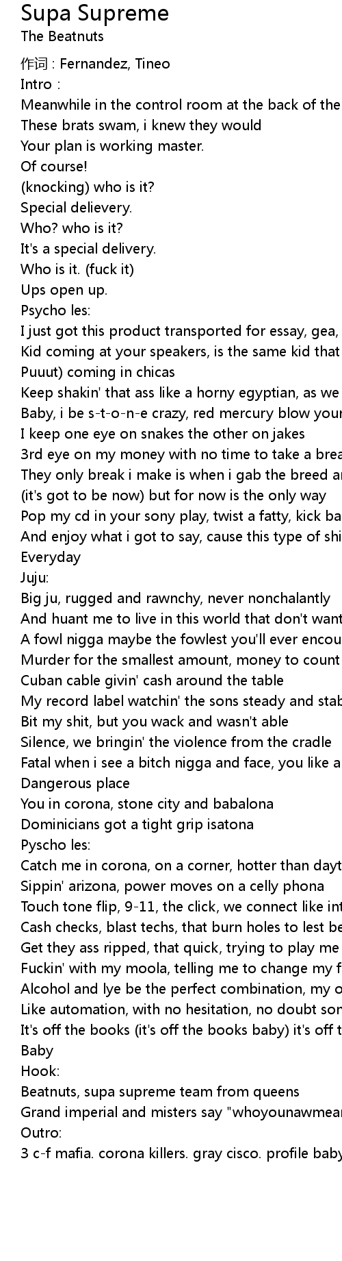 | 歌曲 | Supa Supreme |