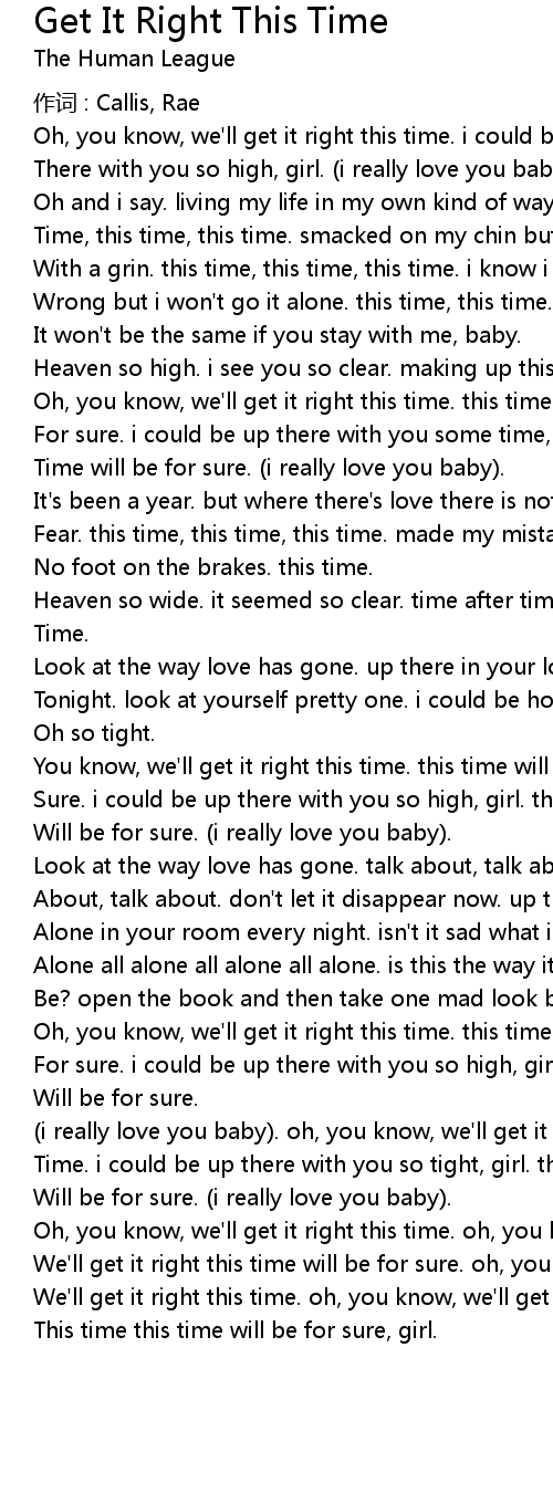 | 歌曲 | Get It Right This Time |
