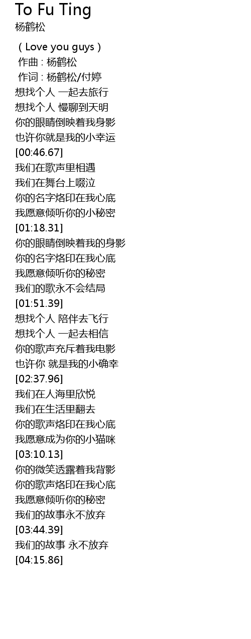| [00:01.000] | 作词 : 杨鹤松/付婷 |