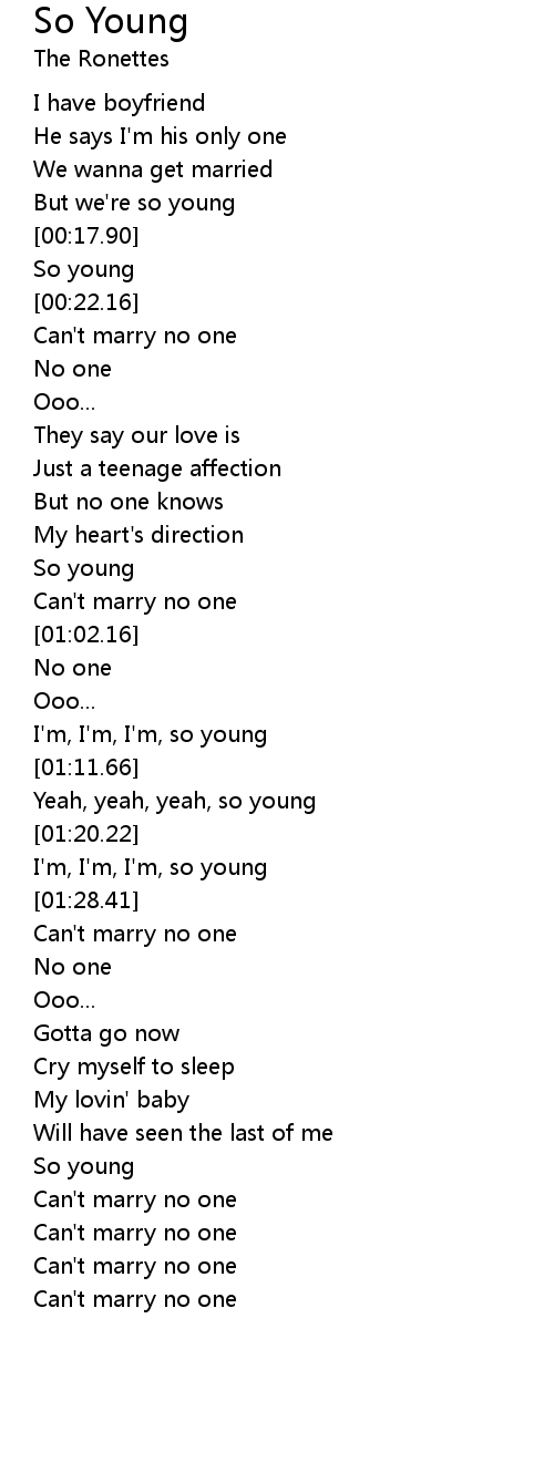 | [01:23.41] | I'm, I'm, I'm, so young |