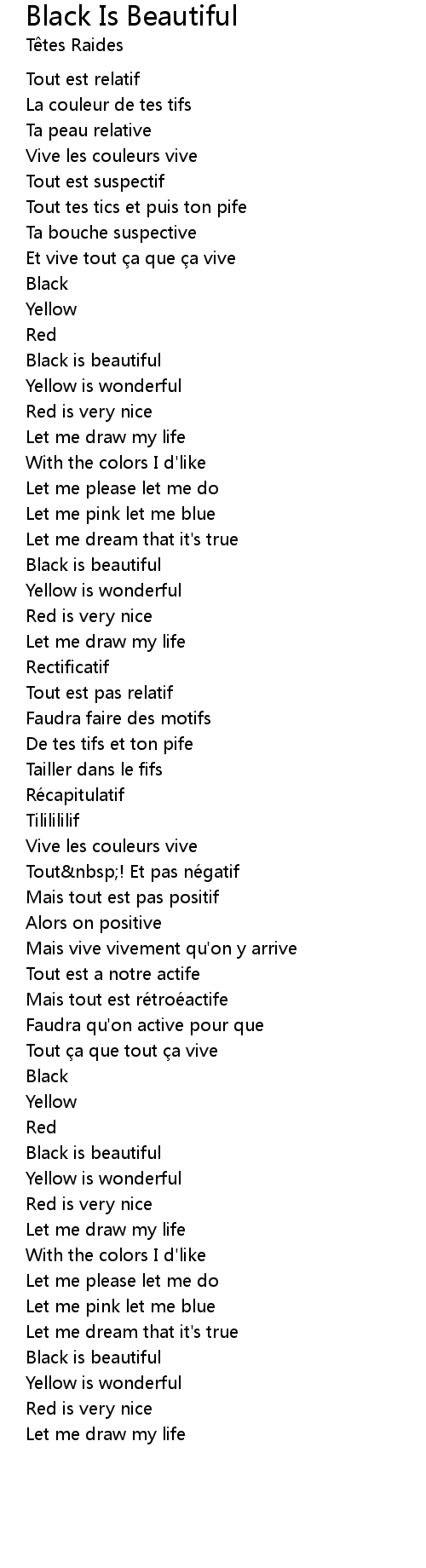 | 歌曲 | Black Is Beautiful |