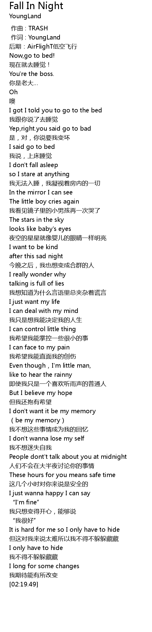 | [00:17.51] | I don' t fall asleep |