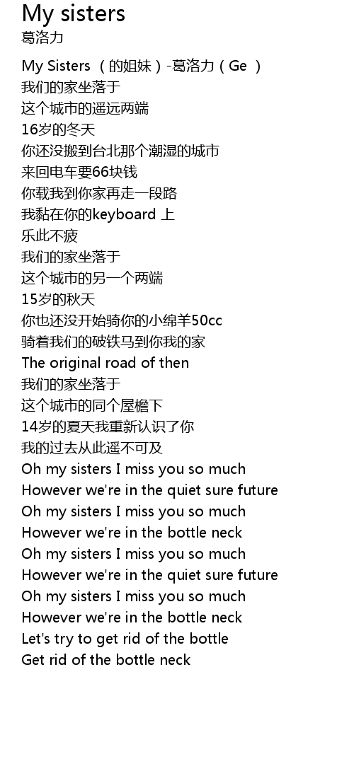 | [00:00.00] | My Sisters de jiě mèi gé luò lì Ge |