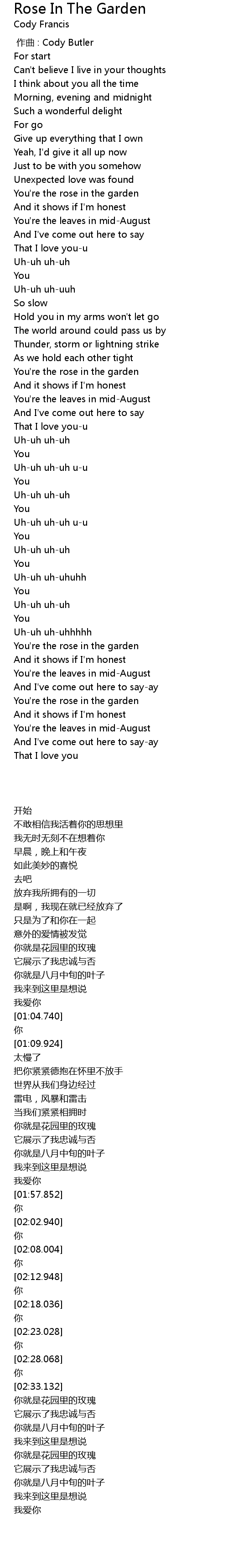 | [02:56.844] | 你就是花园里的玫瑰 |