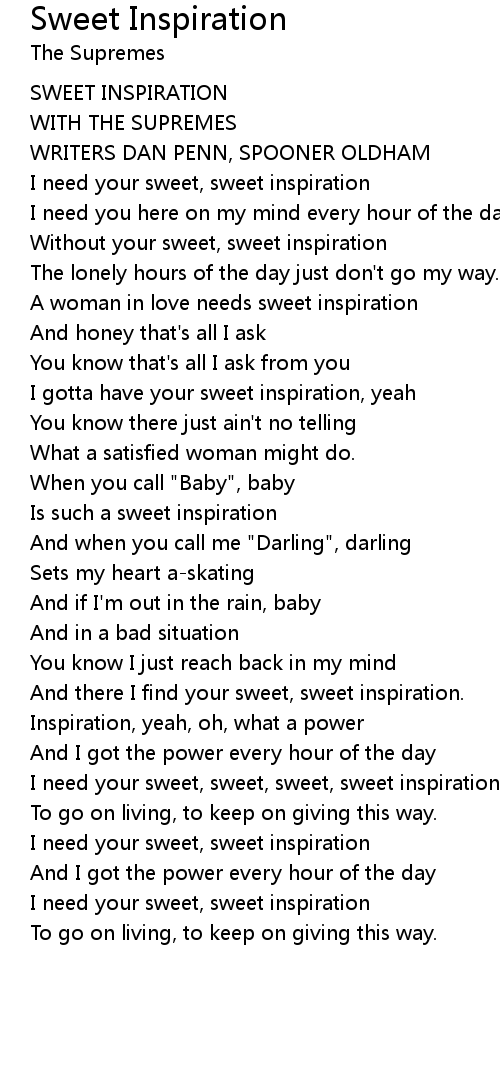 I need your sweet, sweet, sweet, sweet inspiration, yeah |