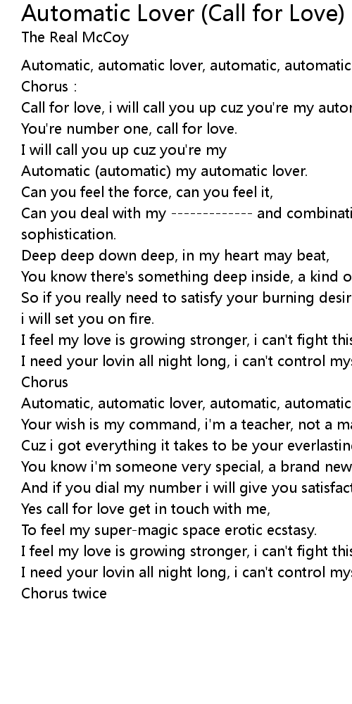 | Call for love, i will call you up cuz you' re my automatic lover, | |