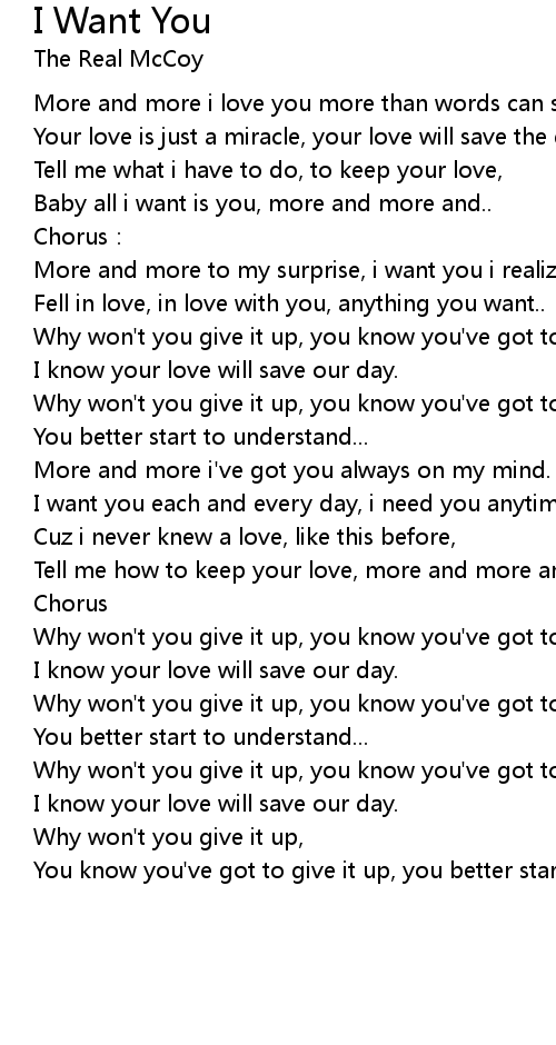 | Baby all i want is you, more and more and.. | |