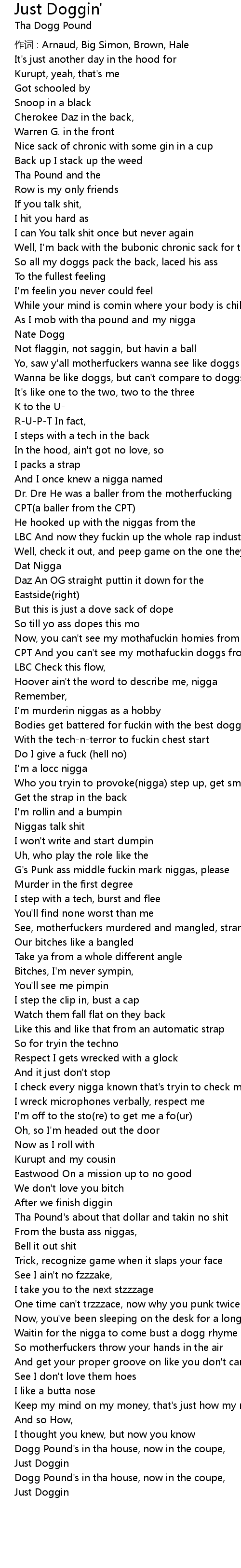 | 歌曲 | Just Doggin' |