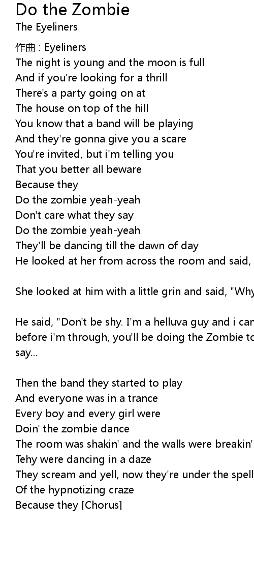 | He said, " Don' t be shy. I' m a helluva guy and i can prove to You what i say, before i' m through, you' ll be doing the Zombie too" and then you could hear him say... | |