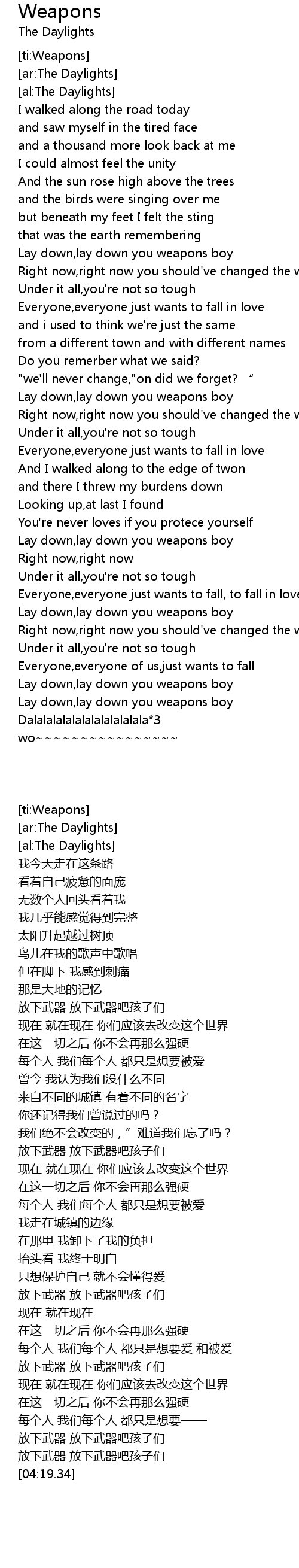 | [03:40.96] | 放下武器 放下武器吧孩子们 |