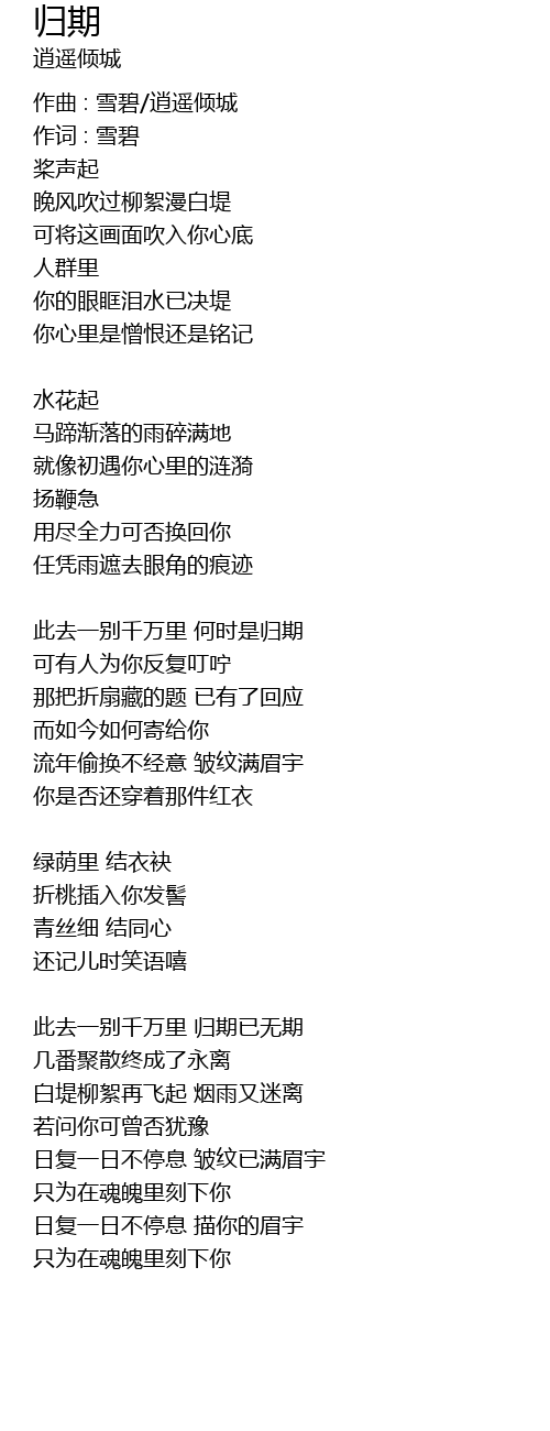 | cǐ qù yī bié qiān wàn lǐ hé shí shì guī qī | |